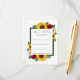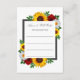 El diseño presenta elegantes girasoles, rosas y margaritas con una paleta de colores dorados amarillos, rojos y blancos de otoño. El diseño también incluye un marco gris de carbón vegetal. Puede cambiar el color de fondo en la parte delantera y de vuelta al color de su elección o dejar ambos en blanco.
