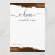This elegant design features top and bottom borders of mocha brown watercolor agate trimmed with gold faux glitter. The word "advice" appears in handwriting calligraphy script with flourishes at the beginning and end. Personalize with the names of the newlyweds in charcoal gray copperplate font. A line at the bottom provides space for guests to sign their advice and wishes for the couple.