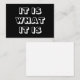 Es lo que es, tarjeta negra blanca moderna, negrita, tarjeta de felicitación