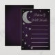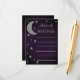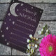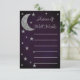 Escrito en la ducha de novia de las estrellas. Luna plateada y estrellas en un fondo morado oscuro de medianoche