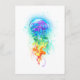 Grandes medusas de azulejo brillantes, de dibujos artísticos, con largos tentáculos en blanco, pintadas con fondo multicolor de acuarela. Mariscas arcoiris.