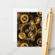 Sin soldadura, metalizado, latón, engranajes dorados sobre un fondo oscuro y oxidado. Estilo Steampunk.