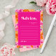 Animar a sus invitados a compartir sus trucos para padres y consejos con estas adorables tarjetas, con tipografía floral, caprichosa y texto editable de color rosa y naranja. Personalizar fácilmente este poster haciendo clic en la opción "personalizar".