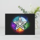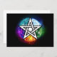 Pentagrama luminoso de dibujo artístico con cinco elementos mágicos, agua, tierra, fuego, astral, aire sobre fondo negro. Pentagrama de Wiccan. Wicca