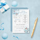 Tarjeta de "predicciones y consejos" para bebés de ballena azul y blanca. Para personalizarlo o cambiar el texto, los colores y las fuentes, haga clic en el botón para editar el diseño. Incluye la fecha de nacimiento, hora, peso, longitud, color del ojo, color del pelo, parecido y espacio para añadir un mensaje de consejo para los nuevos padres.