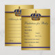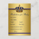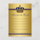 Juegos de baby shower del príncipe Predicciones para tarjetas de baby shower y Consejos para los padres en la parte posterior con una hermosa corona azul real y dorada sobre un fondo azul real y dorado. Estas predicciones de príncipe para bebé y tarjetas de consejos se pueden personalizar para su evento agregando sus propias preguntas y texto. Simplemente haga que sus invitados las completen y el que esté más cerca con las predicciones gana un premio. Asegúrese de guardar todas las tarjetas y conservarlas como recuerdo del bebé.