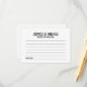 Añada un toque personal a su boda con un moderno consejo boda en blanco y negro y una tarjeta de deseos. Esta tarjeta de consejo incluye el título y los detalles en negrita negra sans serif estilo de fuente sobre fondo blanco. Perfecto para boda, ducha de bebé, fiesta de cumpleaños, soltera y cualquier ocasión especial.