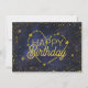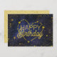 Tarjeta de cumpleaños personalizado con "Feliz Cumpleaños" en tipografía mixta enmarcada con estrellas de oro, estrellas fugadoras y constelación cardíaca. Hay varios tamaños disponibles. También disponible para descarga instantánea para enviar y compartir.