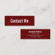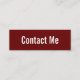 Esta mini tarjeta de visita roja oscura dice 'contáctame' en la parte delantera de la tarjeta de visita. La parte posterior tiene cuatro líneas de texto en blanco para tu nombre e información de contacto como tu número de teléfono, dirección de correo electrónico y/o identificador de redes sociales. Todo el texto se puede editar o eliminar.
