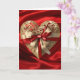 Tarjeta de corazón del día de San Valentín con corazón de oro y cinta dorada roja