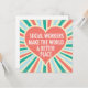 Los trabajadores sociales hacen del mundo un lugar mejor. Una hermosa y inspiradora tarjeta de trabajo social para un gerente de servicios sociales con un corazón retro bonito y colores alegres.
