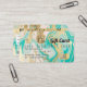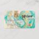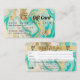 Una elegante y moderna belleza El cabello y el maquillaje artista tarjeta de crédito estilo tarjeta de regalo tarjeta con una tipografía de escritura moderna en oro de moda, ágata geodésica de mármol turquesa y fondo de moda dorado Relieve metalizado metálico glam. todo texto es personalizable, añada tus medios sociales. Con una franja de oro falsa. Añada su logotipo, su código de monograma y QR.