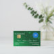 Esta tarjeta de visita parece una tarjeta de crédito, con tonos verdes y brillantes formando el fondo. Su nombre puede aparecer en la misma posición que en una tarjeta de crédito. Puedes personalizar la mirada a tu deseo.