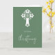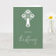 Una tarjeta de bautizo verde de helecho con una cruz floral blanca. Parte de la Colección Floral Cross Christening.