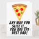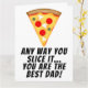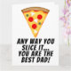 De cualquier manera que lo cortes, eres el mejor papá del mundo tarjeta de pizza. La pizza "Mejor Papá del Mundo" es una tarjeta de felicitación divertida y juguetona para el Día del Padre. Mensaje humorístico: "De cualquier manera que lo cortes, eres el mejor papá del mundo". Muestra admiración y aprecio por papá. Ilustración de una sola rebanada de pizza con queso, completa con queso derretido y toppings de pepperoni. Este diseño caprichoso seguramente traerá una sonrisa al rostro de cualquier papá y lo hará sentir especial cada vez que lo vea. Una excelente manera de mostrarle a tu papá cuánto significa para ti.