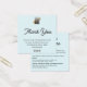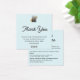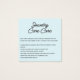 Ha creado una pieza única de joyería y desea que sus clientes estén satisfechos con su compra. Esta tarjeta de inserción de paquetes hace más que sólo dar las gracias. Añadirás tu logo que aumenta la conciencia de la marca. Debajo tendrá una llamada a la acción para su cliente. Esto los anima a visitar su sitio web y seguir sus canales de medios sociales. Se han incluido tres iconos. Si desea más información, póngase en contacto con el diseñador que los agregará. Al revés, es donde agregarás las tareas y no cuidar tus joyas. Sugerimos usar puntos de viñeta para facilitar la lectura. Esta tarjeta de información después de la compra está en un fondo azul claro con texto negro. Hay productos para tu joyería artesanal disponibles. Tómate un momento y navega más por la colección.