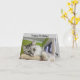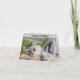 Tarjeta de cumpleaños con un hermoso gato siberiano con grandes ojos verdes! ¡Echa un vistazo a la meditada cita que hay en su interior!