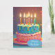 Esta tarjeta de cumpleaños se muestra con una celebración festiva de una colorida tarta impresa. Tiene saludo dentro. Personalizar esta tarjeta o compra como se muestra.