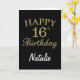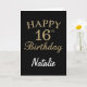 Tarjeta de cumpleaños 16º Purpurina de Oro y Negro con nombre personalizado. Para una mayor personalización, haga clic en el botón "Personalizar" y utilice nuestra herramienta de diseño para modificar esta plantilla.