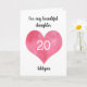 Una tarjeta personalizada de cumpleaños número 20 para ella que presenta una acuarela roja en la parte delantera. Podrá personalizar fácilmente la parte delantera de la tarjeta de cumpleaños con su edad y nombre. Esta tarjeta personalizada de cumpleaños número 20 sería un gran regalo de cumpleaños para ella.