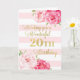 Feliz 20 cumpleaños con flores de acuarela rosa, rayas rosas y versos reflexivos.