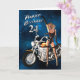 Un chica posando con un gran helicóptero, una tarjeta de cumpleaños para que envíes
