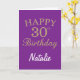 Tarjeta de cumpleaños número 30 de Purpurina morado y dorado con nombre personalizado. Para una mayor personalización, haga clic en el botón "Personalizar" y utilice nuestra herramienta de diseño para modificar esta plantilla.
