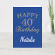 Tarjeta de cumpleaños 40 Purpurina azul y oro