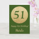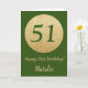 Tarjeta de cumpleaños 51 con brillo verde y dorado