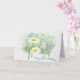 Cierre de margaritas blancas en pradera campestre con marco acuarela por 70 años.