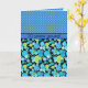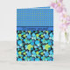 Una tarjeta de cumpleaños número 70 de la moda, con un patrón de mezcla de puntos de polka, acompañada de un peculiar patrón de lunas azules en verde neón, turquesa y verde esmeralda sobre un fondo negro. Parte de la gama de "Blue Moons" de Posh & Painterly.