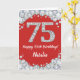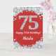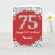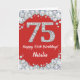 Tarjeta de cumpleaños 75 con brillo rojo y plata