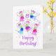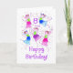 Una tarjeta de cumpleaños muy bonito para un niño de ocho años, con cinco hadas bailando y rociando polvo de hadas, de una pintura acuarela de Judy Adamson. También hay disponibles invitaciones y regalos para fiestas de cumpleaños coincidentes.