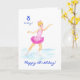 Tarjeta de bonito para el octavo cumpleaños de un chica, con patinador de hielo vestido de rosa, de un ilustracion pintado a mano por Judy Adamson. Por favor, siéntase libre de personalizar el mensaje interno.