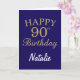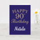 Tarjeta de cumpleaños número 90 del Purpurina Navy Blue y Gold con nombre personalizado. Para una mayor personalización, haga clic en el botón "Personalizar" y utilice nuestra herramienta de diseño para modificar esta plantilla.