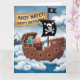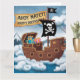 Navegar por la aventura con esta célebre tarjeta de cumpleaños con un caprichoso barco pirata que se esparce por las nubes. El barco está cargado de un cofre del tesoro lleno de regalos coloridos, y el Jolly Roger vuela orgullosamente por encima. Cartel que proclama "Ahoy Matey! ¡Feliz cumpleaños!" añade a la atmósfera festiva. T