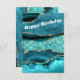 Tarjeta de cumpleaños azul aguamarina dorado turqu