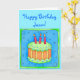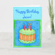 El Happy Birthday card incluye una torta de cumpleaños naranja y verde con velas rojas sobre un fondo azul con un borde verde brillante sobre una tarjeta turquesa. También es grande para un tercer (tercer) cumpleaños. Personalizable completo para personalización y mensaje. Celebre un cumpleaños u otra ocasión con el torta blanca y el arte original de quequitos que es perfecto tanto para niños como para chicas, así como para adultos. Los colores son más suaves y más vivos.