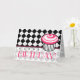 Una tarjeta de cumpleaños con un fondo de argyle blanco y negro. La mitad inferior de la cubierta inferior de la cubierta rosada. El texto negro y rosa dice "¡Feliz cumpleaños!" Ilustracion de quequitos rosados a la derecha. El interior presenta un fondo de estilo de argyle puro. Busque artículos coincidentes en la categoría "Tienda de Cumpleaños" de The Pink Schoolhouse store.