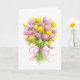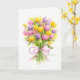 ¡Luminoso y hermoso ramo de tulipán en tarjeta de saludo para un día increíble de celebración! Un colorido regalo de flores hará de este un cumpleaños muy especial y feliz! Inside Verse: ¡Te deseo un día brillante y hermoso! Feliz cumpleaños. Obra y diseño de acuarelas originales de Audrey Ascenzo. ❤️