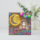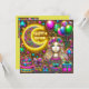 La tarjeta incluye un lindo chica con cabello fluorescente rodeado de globos brillantes, una luna, un pastel de cumpleaños, estrellas y regalos. El saludo en la tarjeta es "Feliz Cumpleaños". La parte trasera de la tarjeta tiene una pequeña versión de la imagen delantera y mucho espacio para escribir un mensaje. AI Bing ayudó en la creación de la tarjeta.