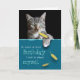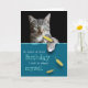 Esta tarjeta de cumpleaños chistosa ofrece un montón de "catitude". La foto de la silueta de un gato de tigre con una mirada presumida como pluma amarilla cuelga de su boca y de otras que caen abajo a lo largo de una pared modelada trullo. Fuentes blancas y azules de la diversión para el sentimiento exterior.