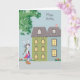 Tarjeta de cumpleaños con conejo bohemio, lindos edificios por los que está caminando, flores y árboles. Gracias a los recortes de diseño y al hungryjpeg por algunos de los elementos del diseño.