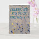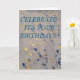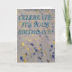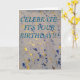 La tarjeta de cumpleaños con confeti establece el ambiente para cada ocasión de cumpleaños. Azul real y dorado metálico hacen que este mensaje destaque.