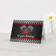 Tarjeta de cumpleaños con diseño de deportes de carreras de coches, con texto personalizable.