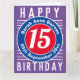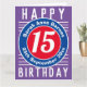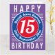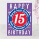 Colores brillantes y diseño audaz. Tarjeta de cumpleaños numerada. 15 años.