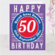 Colores brillantes y diseño audaz. Tarjeta de cumpleaños numerada. 50 años.