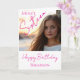 Celebra los dieciséis con estilo con esta elegante tarjeta de cumpleaños de Sweet Sixteen con foto. Con letras negritas en rosa "Sweet Sixteen" en el área de la foto y un "Feliz cumpleaños [Nombre]" personalizado debajo, esta tarjeta plegable es la manera perfecta de mostrar una instantánea favorita y enviar deseos sinceros. Ya sea glamorosa, divertida o totalmente espontánea, tu foto se convierte en la estrella del diseño, lo que hace que esta tarjeta sea un recuerdo que atesorarán. ¡Ideal para adolescentes que aman un poco de brillo y mucha personalidad!