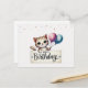 ¡Haz que cada cumpleaños sea especial con esta adorable tarjeta de cumpleaños! Con un felino feliz sosteniendo dos globos coloridos y el texto "Feliz cumpleaños" en un hermoso estilo de acuarela digital. Los puntos festivos en el fondo le dan un toque divertido. ¡Perfecto para sonreír a la cara de la fiesta de cumpleaños!