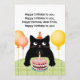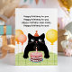Tarjeta de cumpleaños con gato, pastel y vela